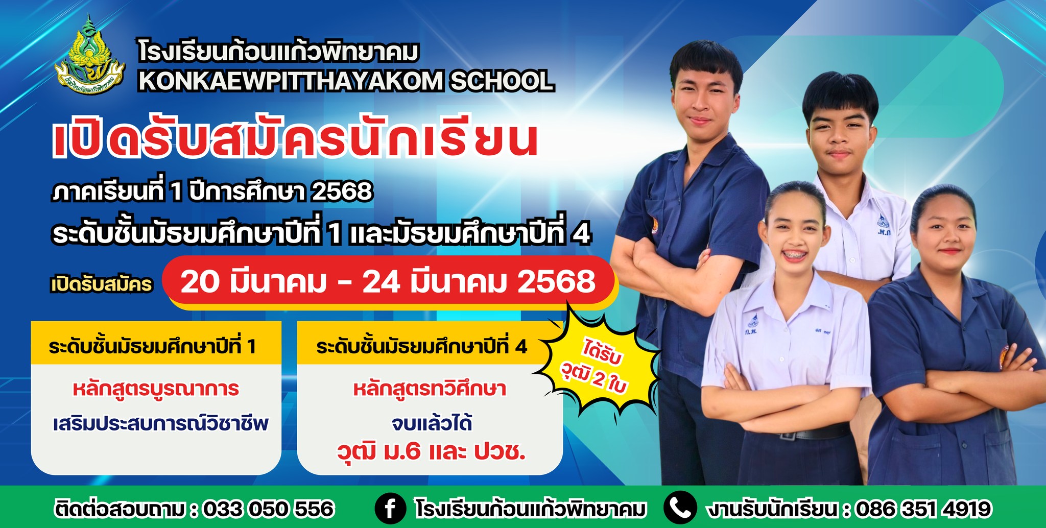 โรงเรียนก้อนแก้วพิทยาคม ยินดีต้อนรับ ติดตามข่าวสารได้ที่เพจ Facebook ได้ที่ โรงเรียนก้อนแก้วพิทยาคม